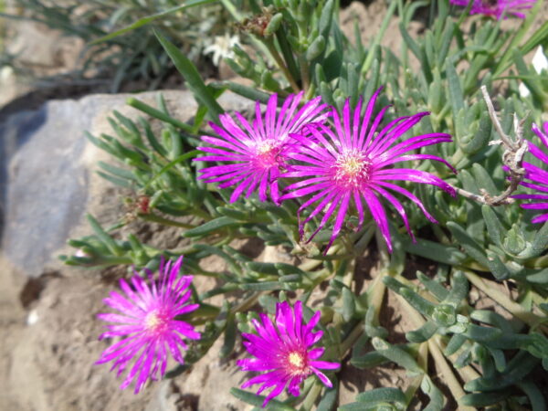 - květy 3-4cm velké, fialovo-růžové barvy, široce rozevřené za slunečných dnů, listy dužnaté, s voskovitým povlakem, tvoří rychle rozrůstající se koberec