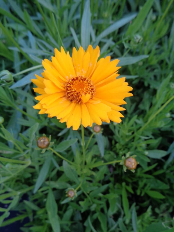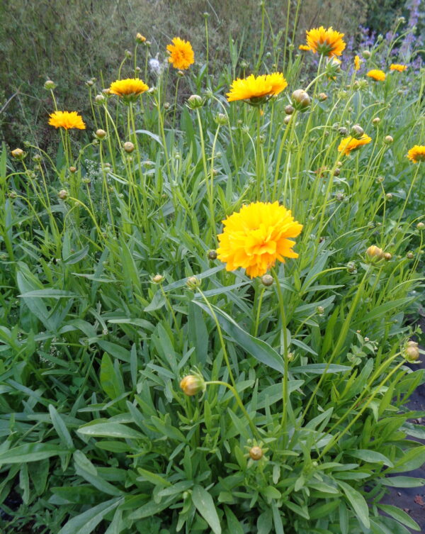 - velký, zlatožlutý květ, který je plný/poloplný/jednoduchý, listy zelené, lesklé,