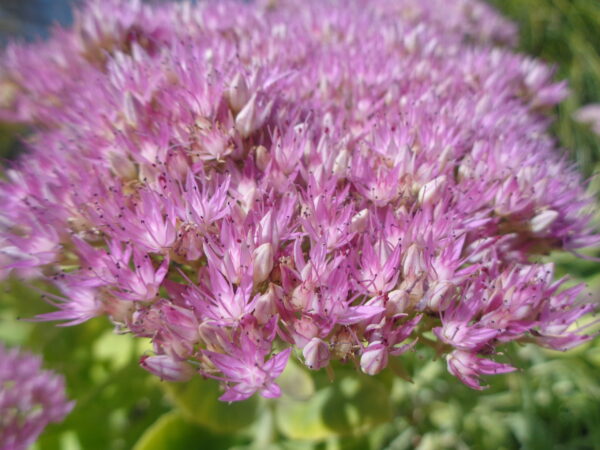 - růžové kvítky, seskupené v bohatých vrcholových květenstvích, listy dužnaté, šedě ojíněné, před vykvetením vypadají jako ´zelí´ - podle toho se tak rozchodníku také přezdívá
