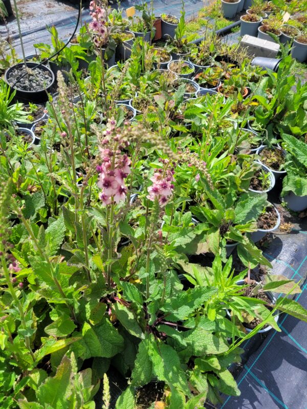 - v přízemní růžici jsou listy drsně žilnaté, zvrásněné, sytě zelené barvy, z růžic vyrůstají někdy řídce větvená květenství menších, nachových, nebo fialových květů, vynikne především při použití více kusů najednou