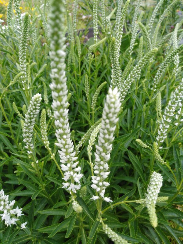 - sněhově bílá barva kvítků seskupených do úzkých, pevně vzpřímených klasů, listy zelené, na okrajích zoubkaté, rozrazil je vhodný do smíšených záhonů, do skalek i do kamenných truhlíků